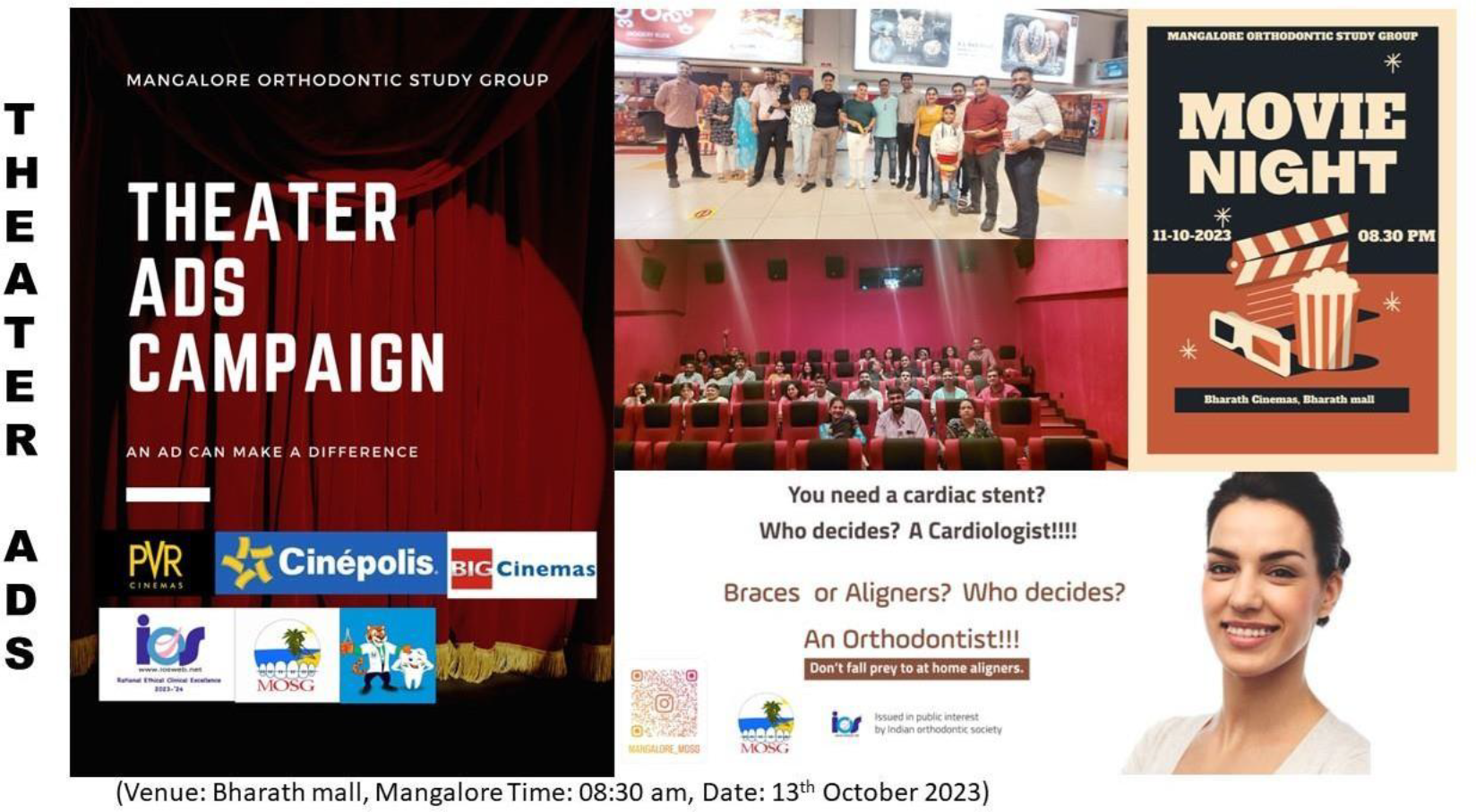 The Theatre Ads Campaign took place from 5th to 13thOctober 2024 at Big Cinemas, PVR, and Cinepolis in Mangalore. This initiative featured video highlighting the importance of receiving orthodontic treatment from qualified professionals.