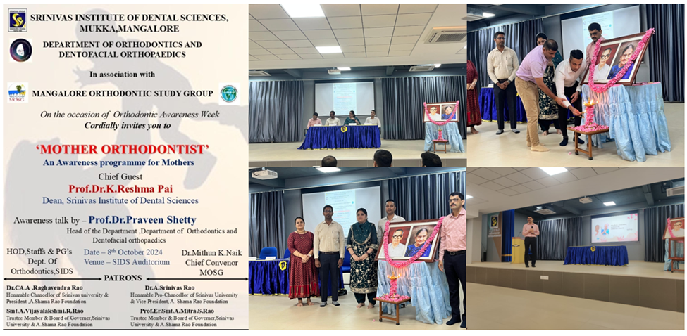 Inspiring discussions marked the "Mother Orthodontist Campaign" at Srinivas Institute of Dental Sciences, Mukka, Mangalore. The event featured a talk titled “The Role of Mothers in Early Orthodontic Care” by Prof. and Head of the Department, Dr. Praveena Shetty. He educated mothers about the significance of timely orthodontic care and preventive orthodontics, emphasizing their crucial role as the first point of contact for their children’s healthcare.