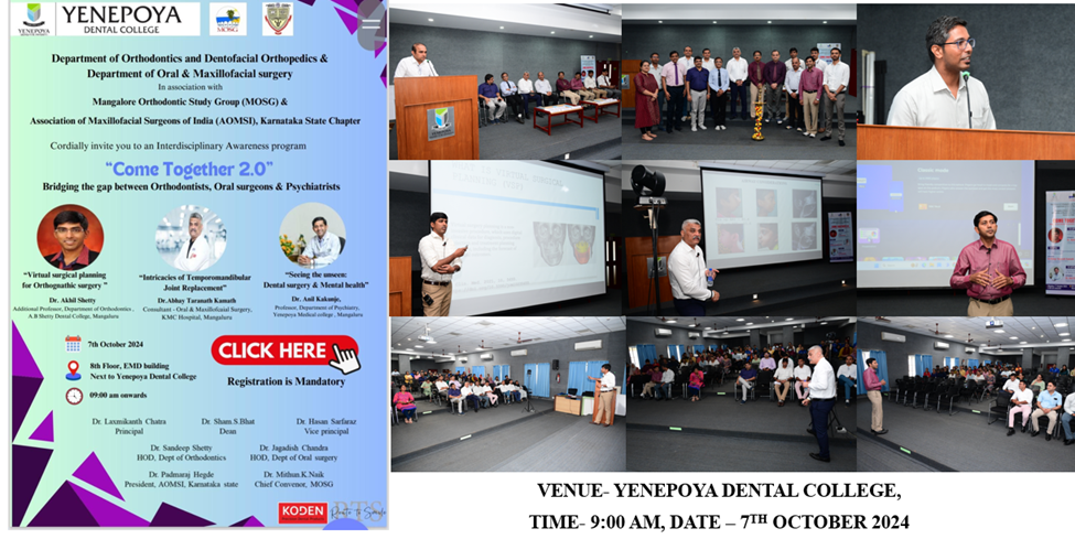 After last year's success of Come Together 1.0, the Mangalore Orthodontic Study Group (MOSG) invited attendees to Come Together 2.0, themed "Bridging the Gap Between Orthodontists, Oral Surgeons, and Psychiatrists." The MOSG and the Association of Oral and Maxillofacial Surgeons of India (AOMSI) Karnataka State Chapter organized the event.