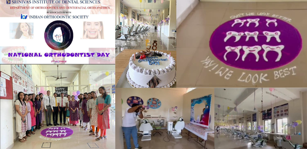The National Orthodontist Day celebration was held at A.J. Institute of Dental Sciences on 5th October 2024, at 10:00 AM, honoring orthodontists and their contributions to improving oral health and patient confidence. Various activities, including informative talks and patient success stories, emphasized the importance of early orthodontic care. The department was beautifully decorated for the occasion, with vibrant banners, creative displays, and smile-themed decorations, creating an inviting and celebratory atmosphere. This thoughtful décor added to the festive spirit, making the event both visually engaging and memorable for attendees.